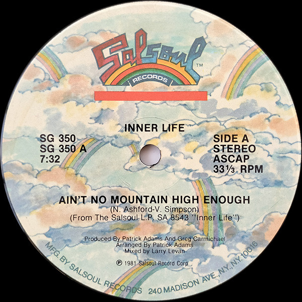 Format: 12" Label: Salsoul Records – SG 350 Country: US Year: 1981 Genre: Soul, Disco Condition: VG+ Sleeve: Gen Tracklist: A Ain't No Mountain High Enough 7:32 B Ain't No Mountain High Enough (The Garage Version) 10:28