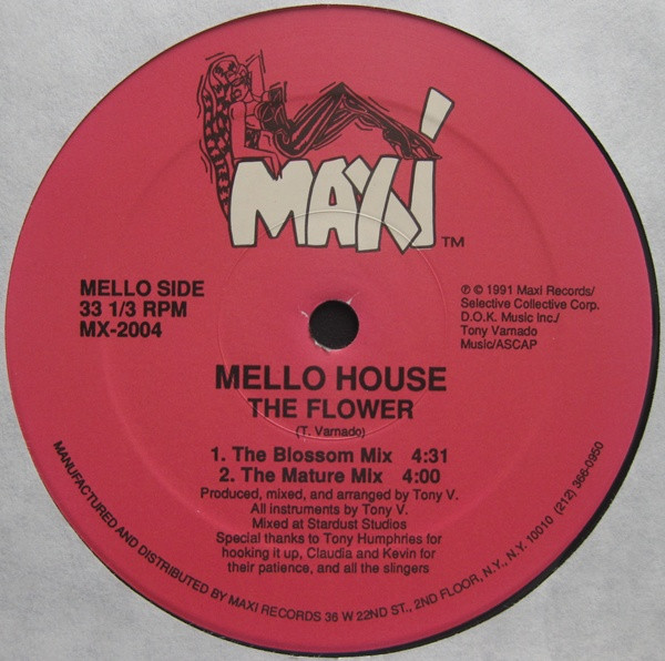 Format: 12" Label: Maxi Records – MX-2004 Country: US Year: 1991 Genre: House, Deep House, Garage House Condition: VG+ Sleeve: Gen Tracklist: Mello Side A1 The Flower (Blossom Mix) 4:31 A2 The Flower (Mature Mix) 4:00 House Side B1 Organ Ride (Smooth Ride) 6:17 B2 Organ Ride (Rough Ride) 5:03