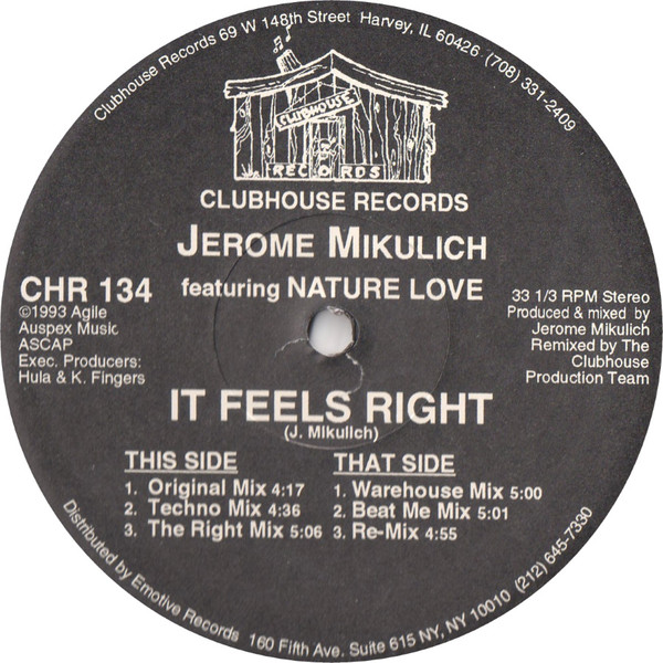 Format: 12" Label: Clubhouse Records – CHR 134 Country: US Year: 1993 Genre: Techno, Deep House, Garage House Condition: VG+ Sleeve: VG Tracklist: This Side A1 It Feels Right (Original Mix) 4:17 A2 It Feels Right (Techno Mix) 4:36 A3 It Feels Right (The Right Mix) 5:06 That Side B1 It Feels Right (Warehouse Mix) 5:00 B2 It Feels Right (Beat Me Mix) 5:01 B3 It Feels Right (Re-Mix) 4:55