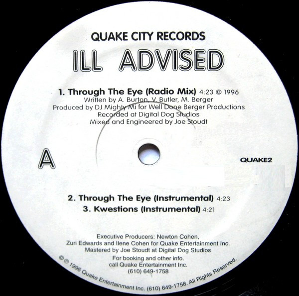 Format: 12" Label: Quake City Records – QUAKE2 Country: US Year: 1996 Genre: Hip Hop Condition: VG+ Sleeve: Gen Tracklist: A1 Through The Eye (Radio Mix) 4:23 A2 Through The Eye (Instrumental) 4:23 A3 Kwestions (Instrumental) 4:21 B1 Against The Grain (Radio Mix) 4:58 B2 Against The Grain (Instrumental) 4:58 B3 Kwestions (LP Mix) 4:21