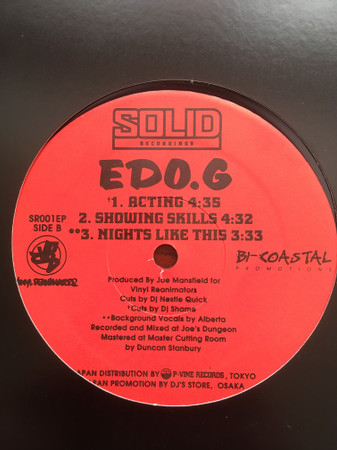 Format: 12", Promo Label: Solid Recordings – SR-001 EP Country: Japan Year: 1996 Genre: Hip Hop Condition: VG+ Sleeve: Gen Tracklist: A1 Dedicated (Radio) 4:14 A2 what u got 3:02 A3 304's 3:45 B1 Acting 4:35 B2 Showing skills 4:32 B3 Nights like this 3:33