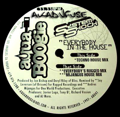 Format: 12" Label: Aqua Boogie Records – AB041 Country: US Year: 1997 Genre: House Condition: VG+ Sleeve: Gen Tracklist: A1 Everybody In The House (Techno House Mix) A2 Everybody In The House (Everybody's Rugged Mix) B1 Everybody In The House (Mijangos House Mix)