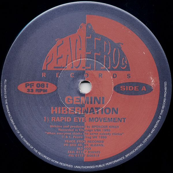 Format: 12" Label: Peacefrog Records – PF 061 Country: UK Year: 1996 Genre: Deep House Condition: VG Sleeve: Gen Tracklist: A Rapid Eye Movement 6:40 B1 Counting Sheep 6:23 B2 Phosphorscene 6:13