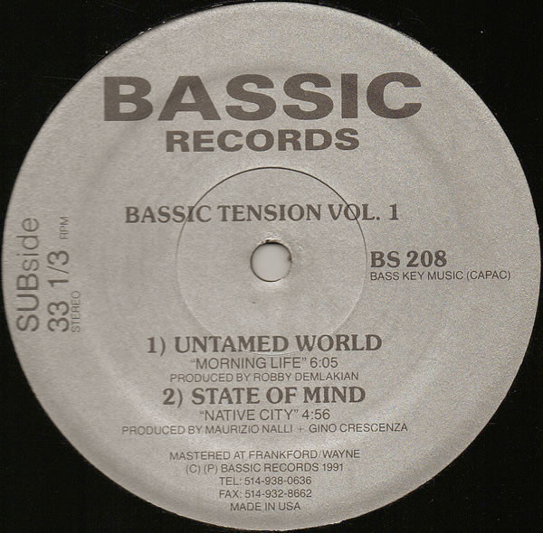 Format: 12" Label: Bassic Records – BS 208 Country: US Year: 1991 Genre: Deep House, Garage House Condition: VG+ Sleeve: Gen Tracklist: Sub Side A1 Untamed World– Morning Life 6:05 A2 State Of Mind – Native City 4:56 Urban Side B1 Touch To Touch– Mystery 5:22 B2 K.M. Formula– Realm Of K.A.P.S. 6:22